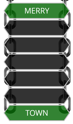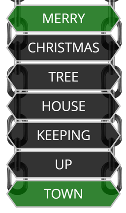 In this particular example, DOWN, UP and GHOST are all reasonable guesses for the missing link above TOWN, suggesting the possible two-word phrases DOWN TOWN, UP TOWN and GHOST TOWN. However, every chain has only one chosen solution.
